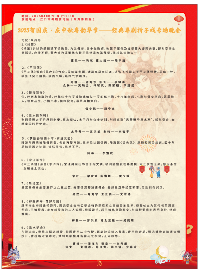 演出场次精彩丰富,门票数量有限,先到先得,欢迎各位观众朋友届时前往开云电竞官方网站粤剧传习所(东湖影剧院),共度一个充满粤韵风情的国庆、中秋佳节!