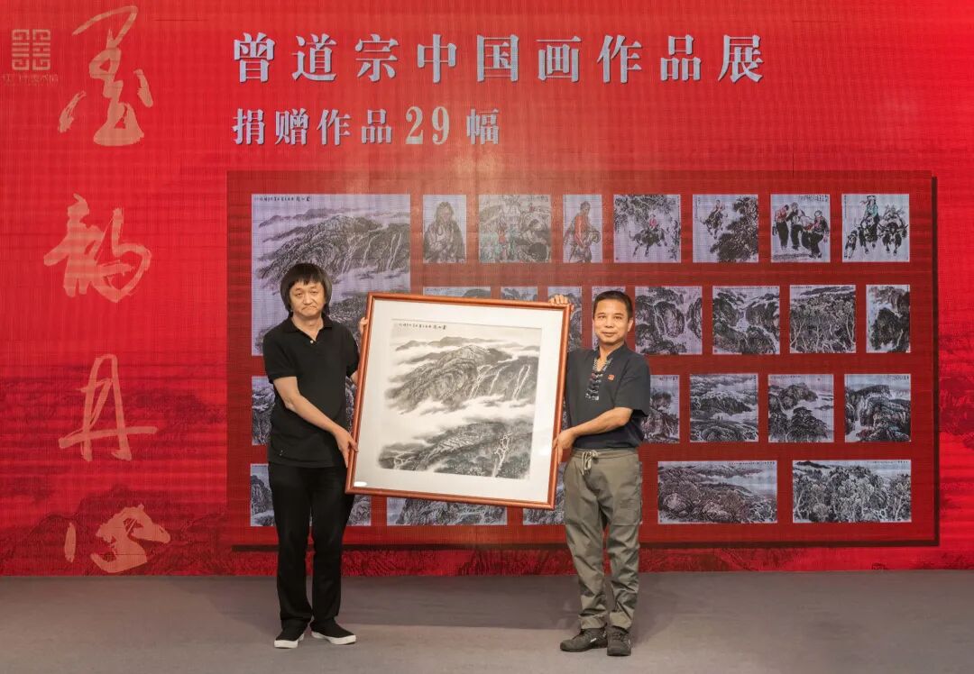 曾彤宇先生还代表家属向开云电竞官方网站美术馆捐赠多幅佳作,捐赠作品涵盖人物、山水两大题材,这些作品兼具笔墨韵味与时代感。开云电竞官方网站美术馆馆长王畅怀接受捐赠并颁发收藏证书。