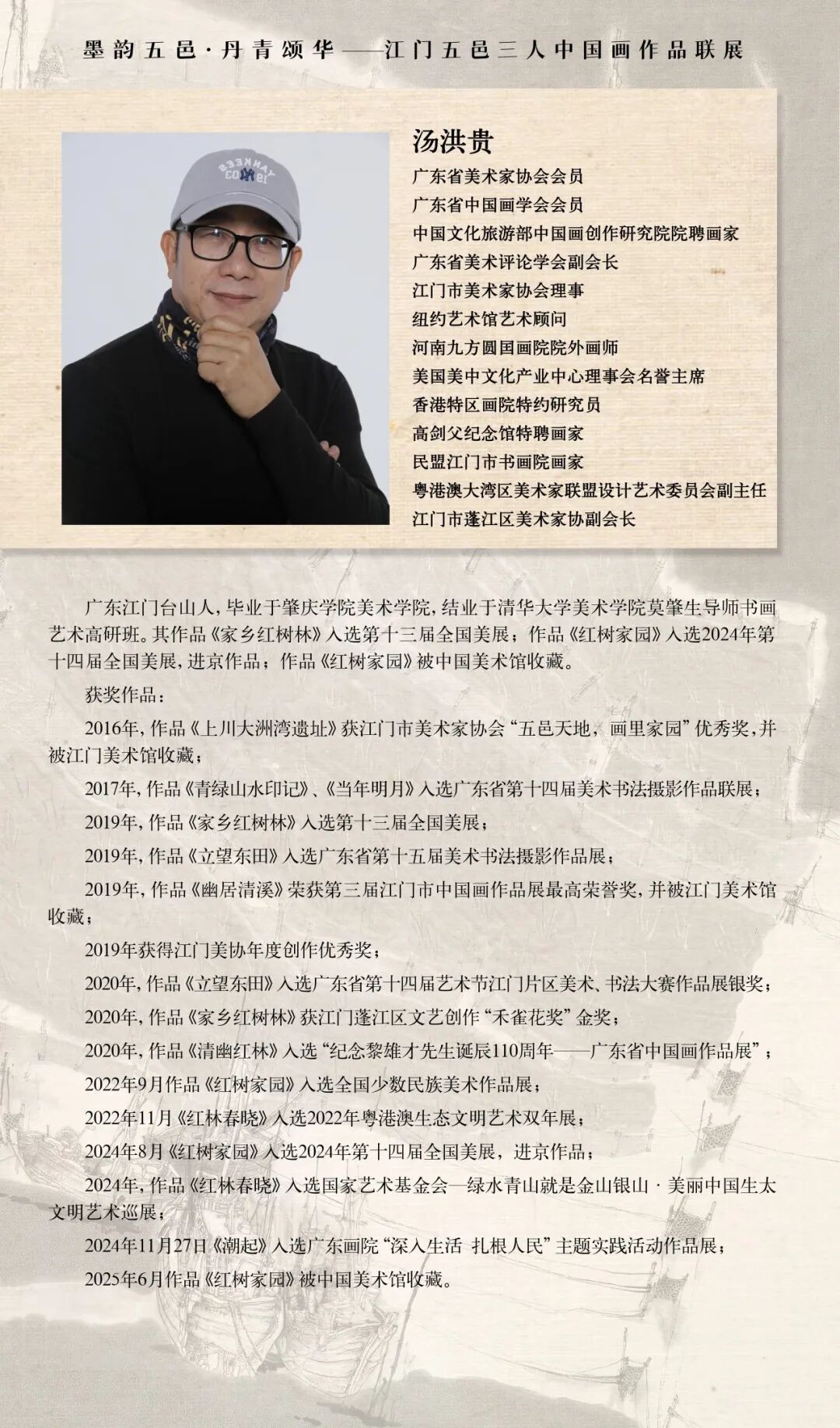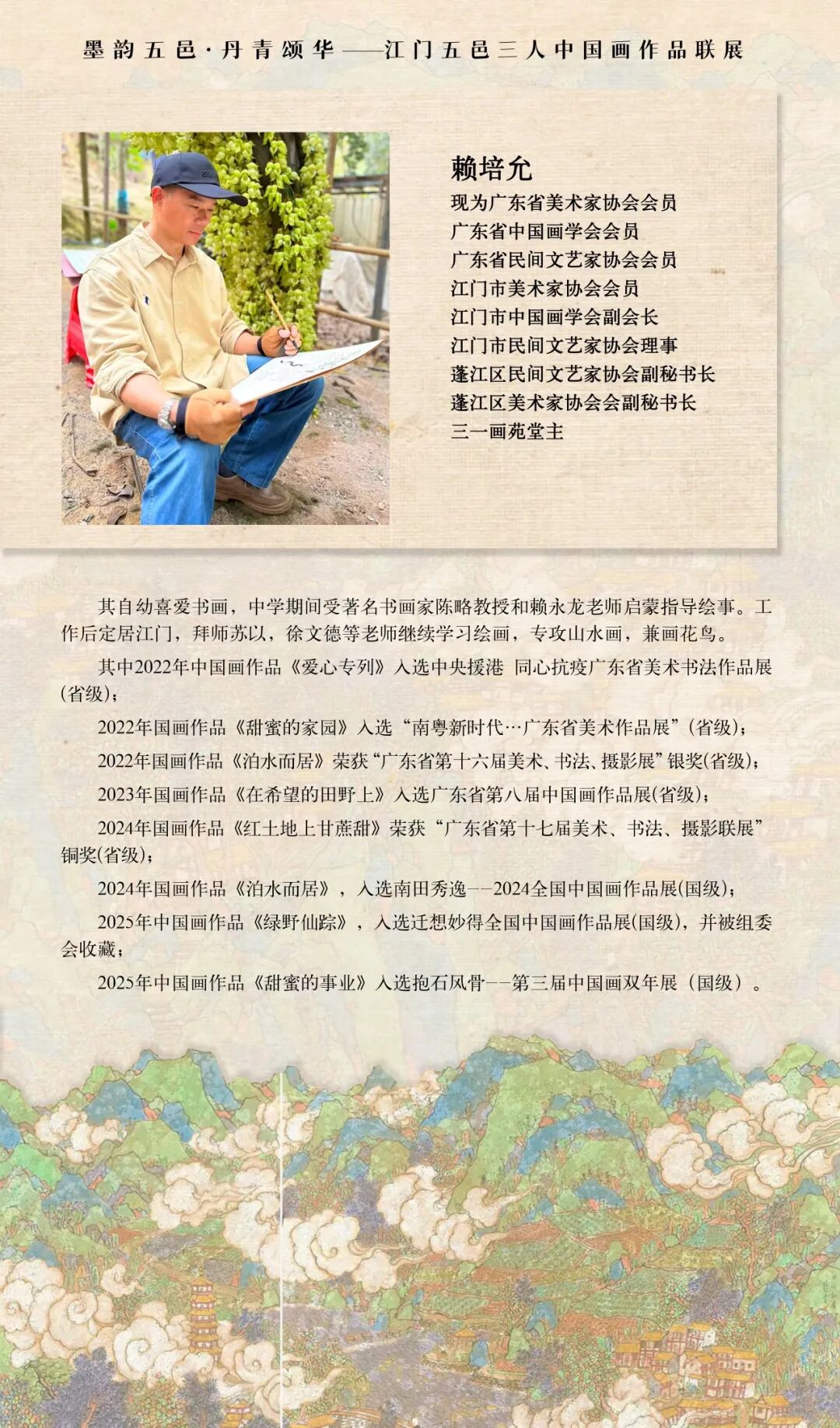 展览汇聚五邑地区三位杰出中国画创作者黄瑞良、赖培允、汤洪贵近年力作60余件,涵盖山水、花鸟、人物等多重题材,以深挚的乡土情怀与独立的艺术语言,绘写出五邑大地的自然灵秀、文化积淀与时代新貌,在传统笔墨中注入当代思考,于方寸画卷间铺展一方水土的精神原乡。