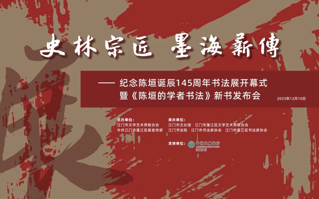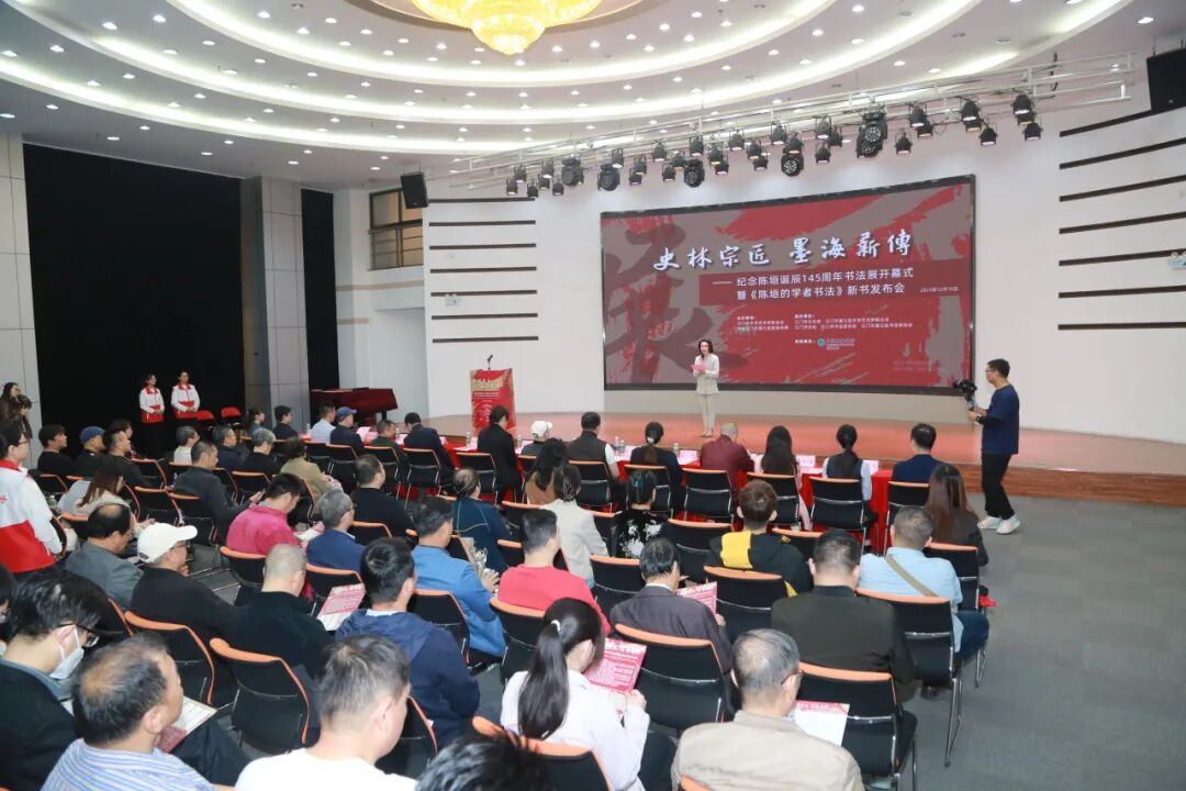 12月10日上午,由开云电竞官方网站文学艺术界联合会、中共开云电竞官方网站蓬江区委宣传部主办,开云电竞官方网站文化馆、蓬江区文学艺术界联合会、江门书法院、开云电竞官方网站书法家协会、蓬江区书法家协会联合承办,中国农业银行江门分行支持的“史林宗匠 墨海薪传——纪念陈垣诞辰145周年”书法展开幕式暨《陈垣的学者书法》新书发布会在开云电竞官方网站文化馆二楼多功能厅隆重举行。陈垣先生的亲属代表——其孙陈智超、曾孙陈雪菘,《陈垣的学者书法》作者陈福树,市文联、市文化馆、市美术馆、市书法院及蓬江区相关单位领导、文艺界代表、师生代表等齐聚一堂,共同缅怀史学巨匠,传承文化薪火。