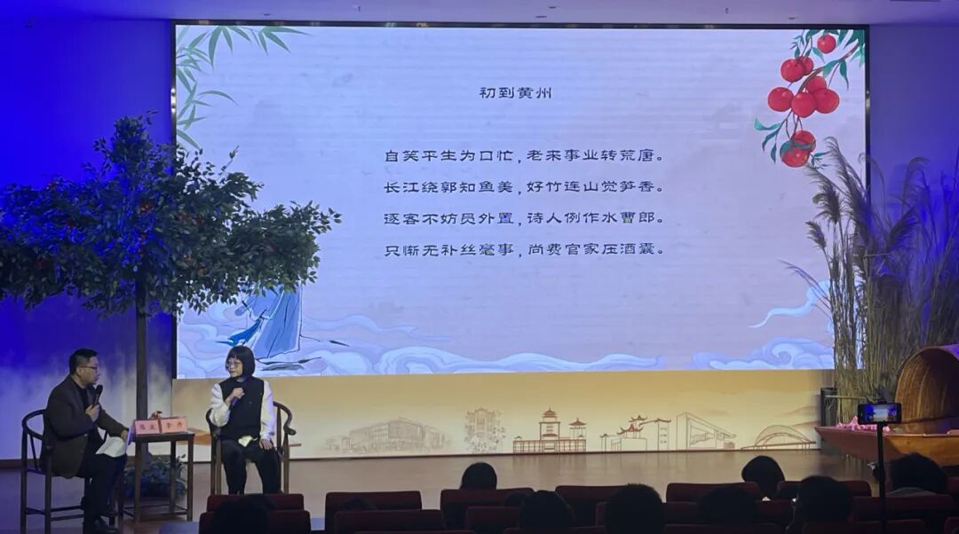 两位嘉宾老师聚焦苏轼的黄州岁月。李丹教授深入浅出地解析了《初到黄州》中“长江绕郭知鱼美,好竹连山觉笋香”的微妙心境——即便身处逆境,苏轼仍能以美食家的敏锐,发现生活中的美好。话题随之转到《猪肉颂》,嘉宾探讨了苏轼如何将炖猪肉升华为一种生活哲学:“待他自熟莫催他,火候足时他自美。”这不仅是烹饪心得,更是他在逆境中耐心等待、豁达以对的生命写照。配合黄州风物展示与诗文朗诵,讲述格外生动。