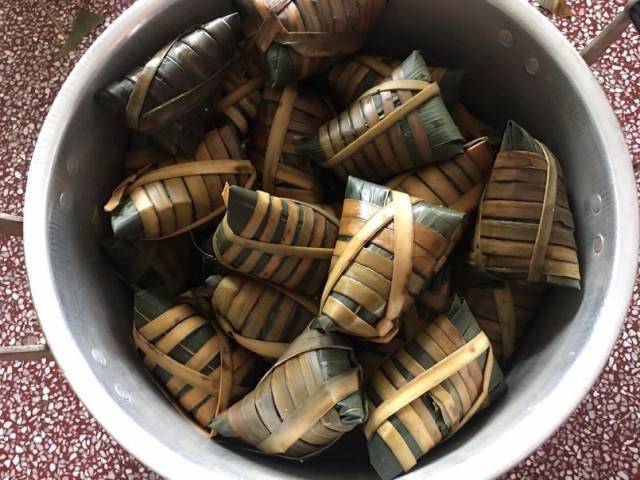 恩平人裹的粽子别具一格,包粽子的粽叶是从深山老林采摘回来的,裹粽子的带子则是带刺的野生鹚古,这样煲熟的裹粽有独特的香味,保存数日也不会变味。恩平粽呈“四角”形,其馅料非常讲究,粽子的材料主要以糯米、绿豆、咸蛋、咸肉为主,粽里的咸肉用的是煮好腌制好的鲜肉,并加入恩平独特的香料“红蓝”叶,不仅能带出特有的咸香味,而且还有清热和暖胃的功效,这是恩平粽的又一特色。