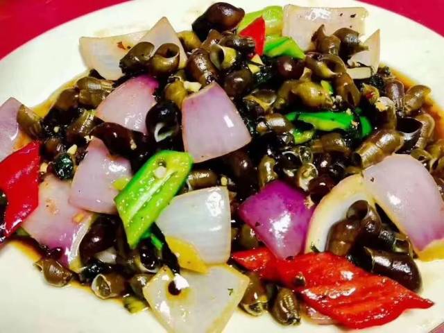 山坑螺是恩平的特产,生长于山涧小溪。这种螺味道很清香,而且肉多,壳小,没有污染,山坑螺的口感好,卖相佳,闪闪发亮的黑色螺壳,很能引起食客的食欲。