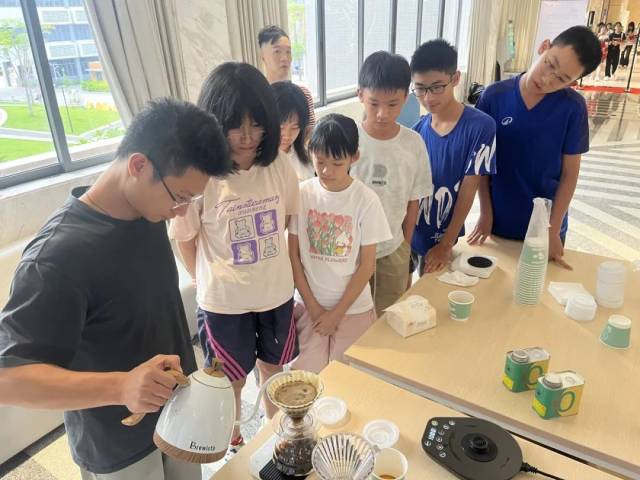 邑轮咖啡豆烘焙工厂主理人容国栋老师则聚焦咖啡品鉴艺术,详解手冲咖啡核心技巧,生动讲解并演示“因豆施策”的咖啡冲泡智慧,并且现场邀请市民读者一起体验不同豆种冲泡咖啡的方法,市民读者积极参与制作,还品鉴到不同口味的咖啡,获得了非凡的体验。