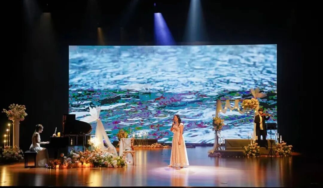 整场音乐会以“相遇相识”“相知相恋”“相伴相牵”三个篇章递进。悠扬的器乐协奏中,《世界赠予我的》缓缓拉开序幕,随后《雨巷》的朦胧情思、《偶然》的刹那心动、《月半小夜曲》的静谧守望、《贝加尔湖畔》的悠远意境、《我喜欢你是寂静的》的无言默契、《爱情不会老》的岁月沉淀相继呈现。其中,全场互动朗诵《青春恋歌》将气氛推向高潮,表演者与观众齐声诵读,让个体的爱恋感悟升华为集体的情感共鸣。