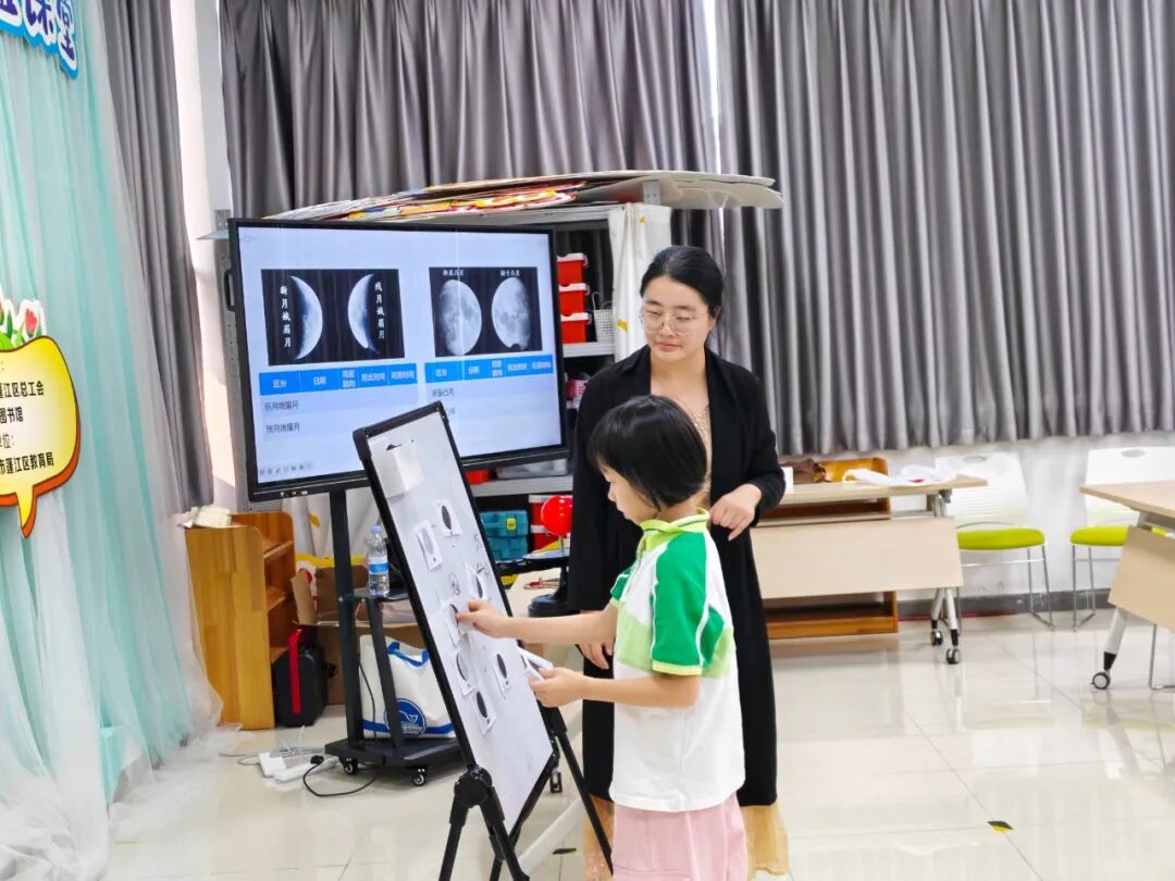地月仪与月相探究活动中,孩子们循着 “嫦娥奔月” 的传说,借助地月仪探寻月球环形山、月海的奥秘,用月相套件复刻新月、满月的更迭,在人文诗意与科学真理的碰撞中,提升了对天体运行原理的认知。