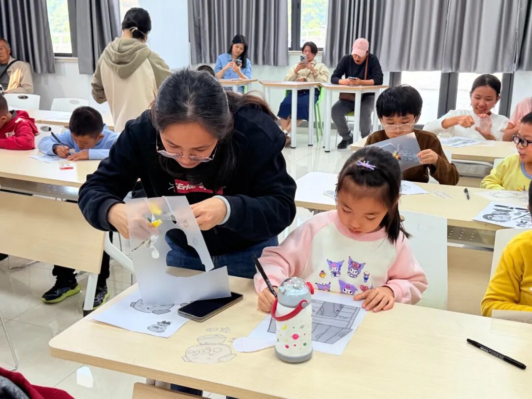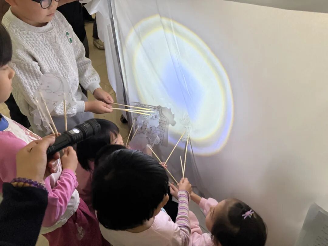 皮影戏光影实践活动中,孩子们先通过实验洞悉光影形成的奥秘,探究影子与光源、物体的关联,再亲手勾勒裁剪皮影角色,以团队协作编排剧本、操控光影、默契配音,既在实操中掌握了光学原理,更让创造力与协作力在艺术表达中绽放光彩。