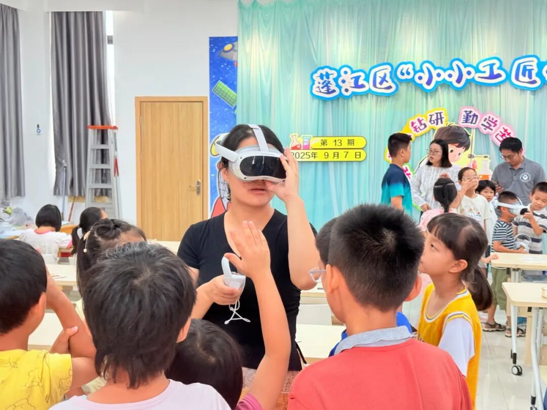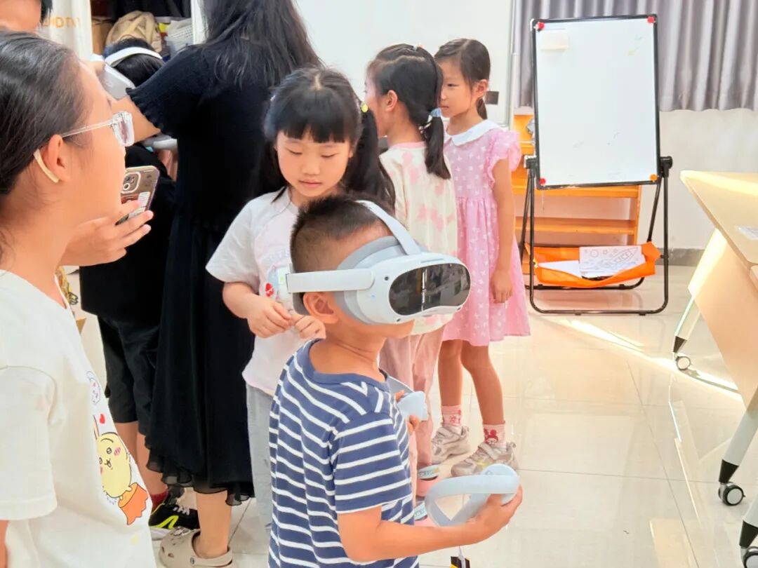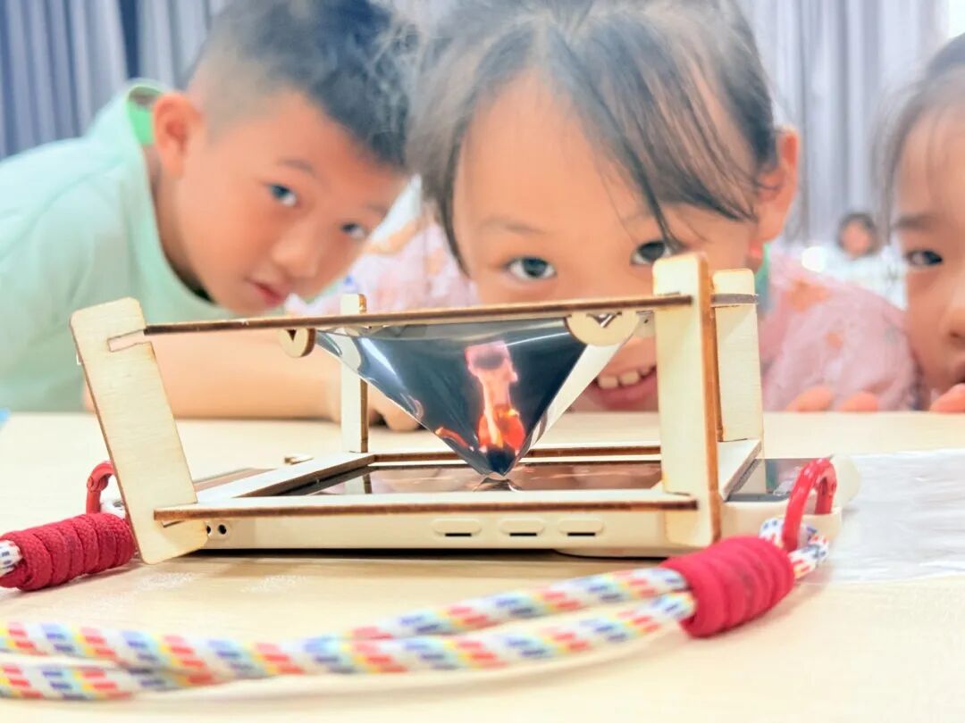 在VR科技体验与全息投影制作系列活动中,老师先为孩子们调试设备、引导佩戴VR眼镜,让大家于虚实交织的幻境里沉浸式感受科技的奇幻魅力,有效激发对前沿科技的探索兴趣;随后孩子们在指导下裁剪透明胶片、搭建投影支架,亲手操作让光影在方寸之间幻化出立体图景,在实践中触摸成像原理的神秘脉络,深化对光学知识的理解。