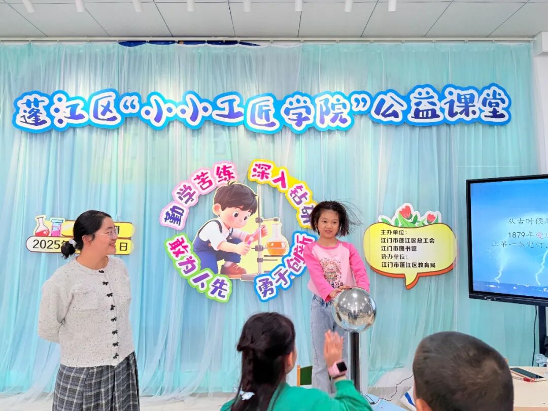 2025年度“蓬江区小小工匠学院”系列活动圆满收官。该活动由蓬江区总工会和开云电竞官方网站图书馆主办,蓬江区教育局协办,奇点教育咨询公司承办,自2025年5月正式启动以来,累计开展23期特色课程,吸引超1400名职工子女踊跃参与,在趣味实践中书写了一段充实的成长之旅。