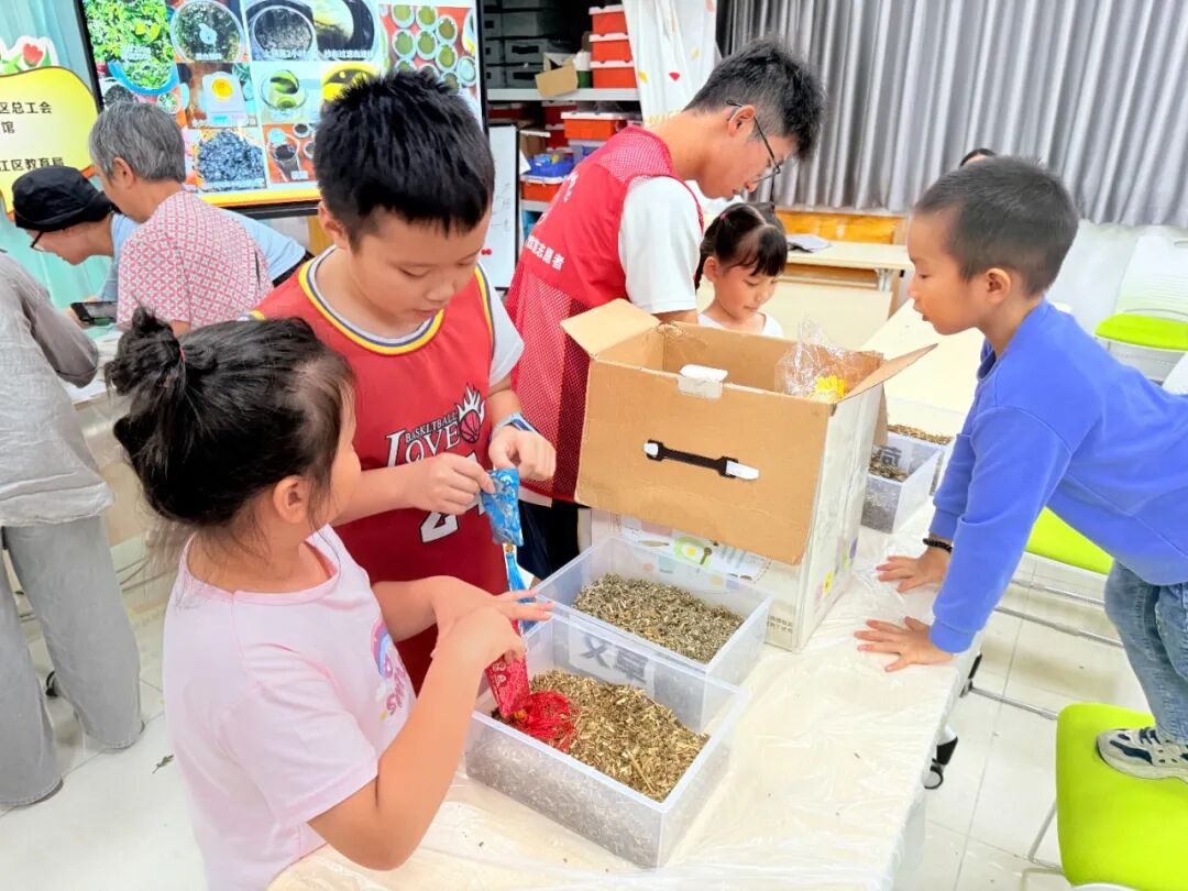 在中草药探秘课程里,孩子们穿梭于薄荷、艾草等天然药材间,仔细辨识它们的形态与气息。从学习精妙的药材配比,到亲手填充散发芬芳的香囊,再到耐心熬制传统膏剂,每一步实践都沉浸在浓郁的药香之中。