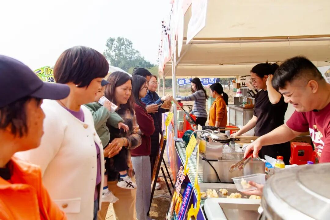 蓬江区棠下镇五洞村的“牛肉狂欢”是重头戏。第七届棠下牛肉美食主题活动在稻田旁的开阔场地举行,口碑商家齐聚,现场美食扎堆,吸引众多食客。