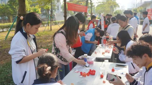 开云电竞官方网站文化馆、开云电竞官方网站非物质文化遗产保护中心精心打造的非遗互动体验市集同步开市,集中展示了新会葵艺、罗氏柑普茶制作技艺、外海生恭鲤鱼手工艺品等12个本地特色非遗项目。传承人近距离面对面展示精湛技法,手把手教学生们动手实操,在指尖互动中感受传统工艺的匠心魅力。市集还设置文创展示区,将非遗元素与现代设计相结合的特色产品,让学生直观感受非遗在新时代的生命力。
