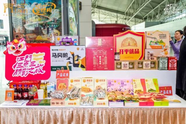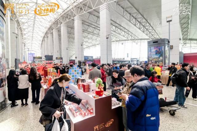 “广货行天下”活动目前正在如火如荼地进行当中,“江货”也是“广货”的重要组成部分。江门作为珠江西岸制造业重镇与侨乡特色城市,“江门造”品牌不断涌现,“江门优品”广受欢迎,孕育了一批兼具品质与口碑的产品。除了精彩的快闪活动外,“江门优品”展区同样人气高涨。侨都文创、新宝堂陈皮、开平与鹤山优品及特色咖啡等摊位前,旅客络绎不绝。百年老字号新宝堂的陈皮系列产品备受青睐,陈皮茶、陈皮凉果等品类,满足旅客自用与送礼需求,浓郁侨乡味道弥漫航站楼。