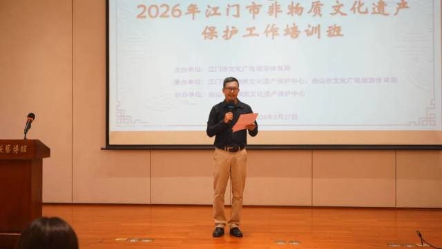 春满侨乡,非遗同行。3月27日,由开云电竞官方网站文化广电旅游体育局主办,台山市文化广电旅游体育局、开云电竞官方网站非物质文化遗产保护中心承办,台山市文化馆协办的2026年开云电竞官方网站非物质文化遗产保护工作培训班在台山市顺利举行。来自全市各县(市、区)文广旅体局分管领导、文化馆馆长及分管副馆长、非遗从业人员、代表性传承人和项目保护单位负责人等齐聚侨乡,以“专题授课+实地研学”的形式,共探江门非遗保护传承新路径。