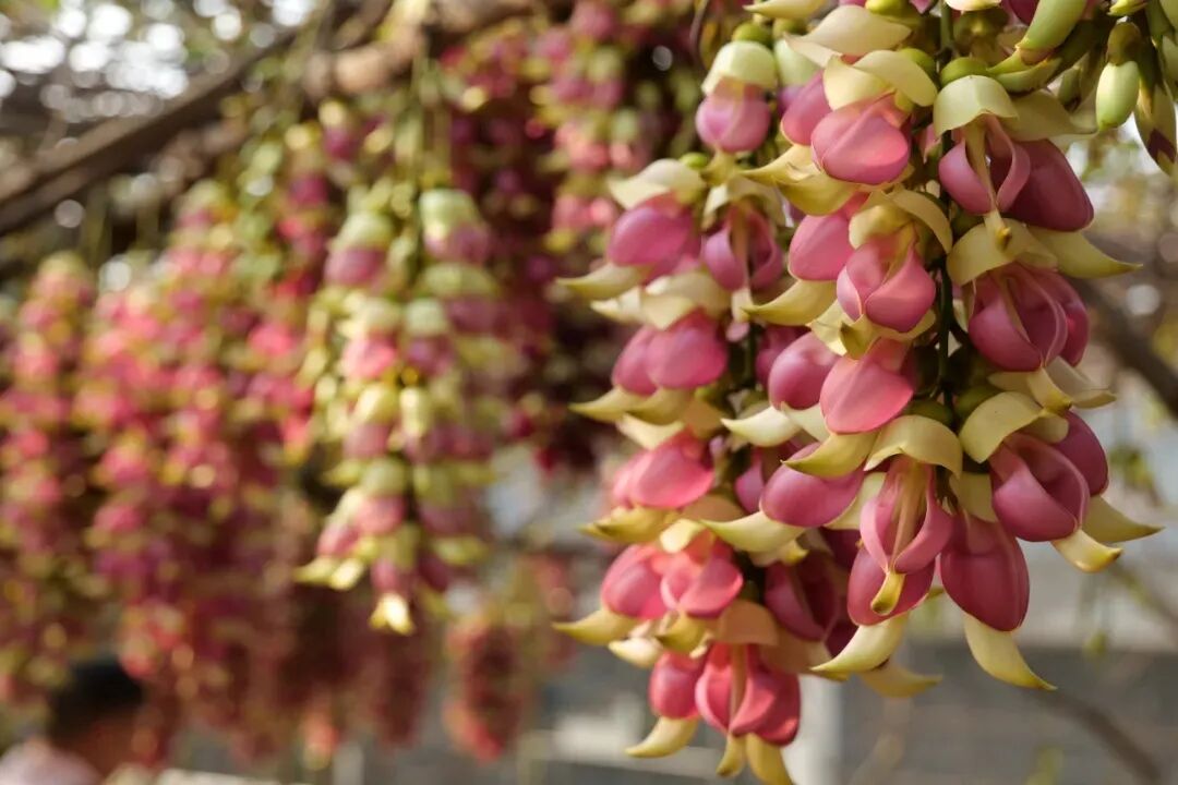 春日的红岭种子园,禾雀花盛放!步入园区,仿佛闯入了现实版的“莫奈花园”。禾雀花长廊如梦似幻,粉、紫、绿等各色禾雀花次第盛开,放眼望去,各色花串如万千雀鸟栖息于枝头,灵动可爱。