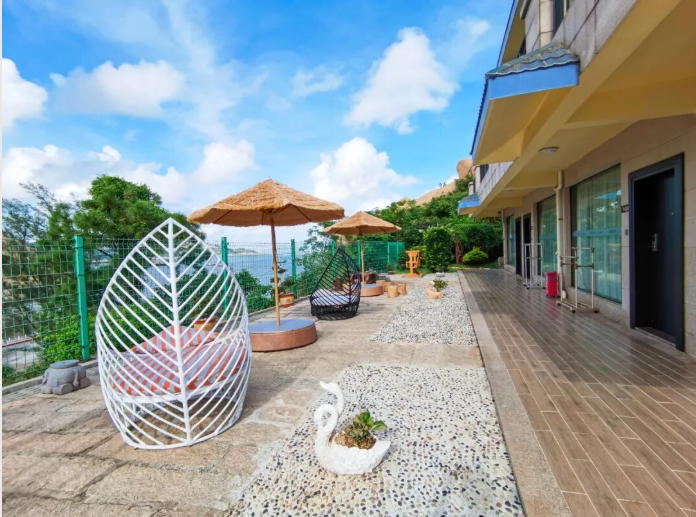 如果是和家人朋友一起来,倚山傍海别墅更有味道。错落有致的房子藏在山间,早晚可观山色,昼夜可听海语。
