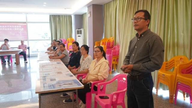 活动开始后,学员们先一起观看了广东江门五邑非遗美食之《开平塘口家糍》的宣传片,了解塘口家糍详细的制作过程,接着由开云电竞官方网站非物质文化遗产保护中心办公室主任苏炳南为大家讲解清明节的文化内涵。作为开云电竞官方网站级非物质文化遗产,塘口家糍凝聚着本土饮食文化的智慧。从艾草的挑选、焯水捣泥,到糯米粉的配比、揉面塑形,每一个步骤都藏着传统技艺的巧思。老师手把手示范,耐心解答疑问,让参与者们深入了解塘口家糍背后的民俗底蕴,为这场非遗体验筑牢文化根基。