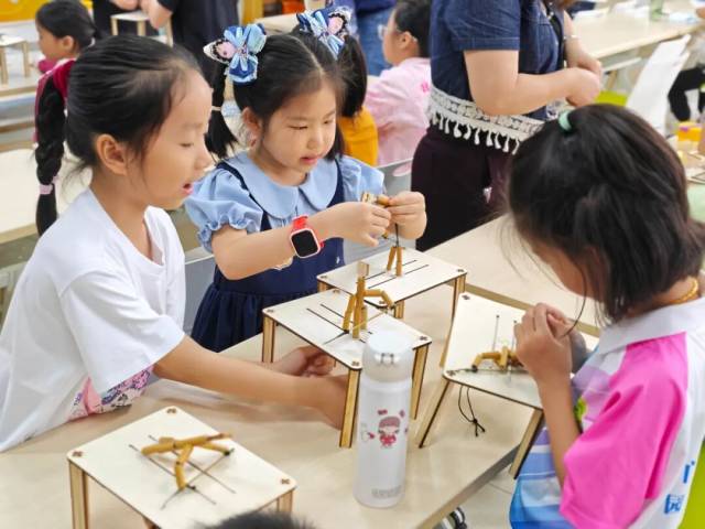第112期竹节人主题活动让孩子们邂逅传统民间玩具的魅力,老师为孩子们介绍了竹节人作为非物质文化遗产相关的民间创意与智慧,激发了大家对传统民俗文化的兴趣。在制作环节,孩子们学习竹节、棉线等材料的穿孔与组装技巧,小心翼翼地完成每一个步骤,制作出可灵活操控的竹节人。制作完成后,孩子们进行竹节人竞技体验,通过拉扯棉线让竹节人做出各种动作,现场欢声笑语不断,孩子们在趣味竞技中体验传统玩具的乐趣,感受古人的创意巧思。