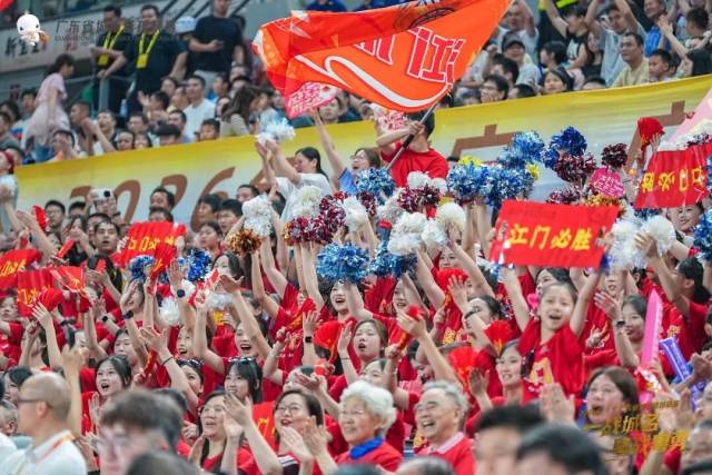 全场红色浪潮席卷赛场,江门幼专百人拉拉队活力炸场,新编《大花轿》《护花使者》特色节目轮番上演,动感十足、吸睛无数。