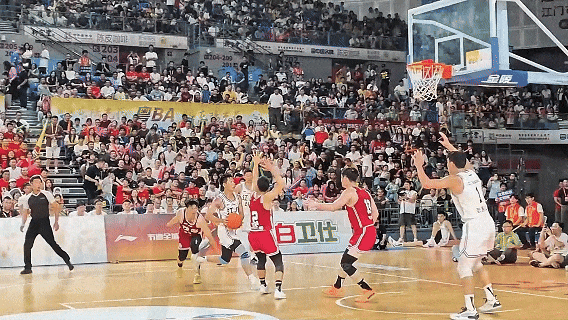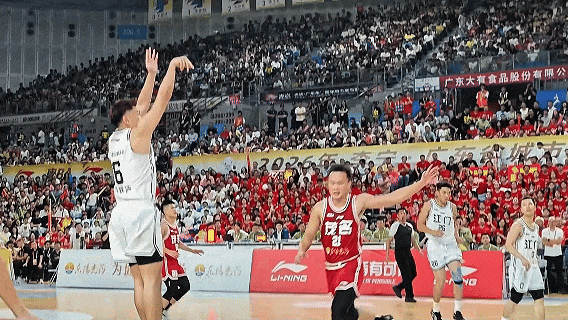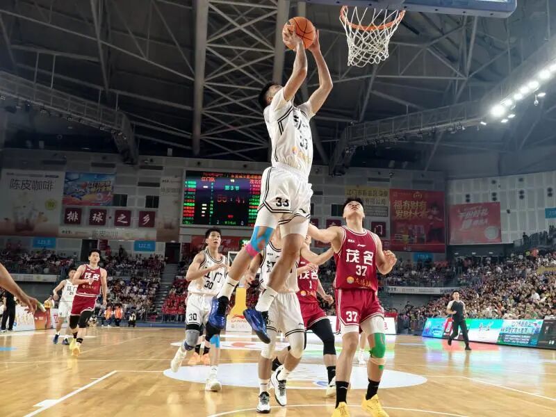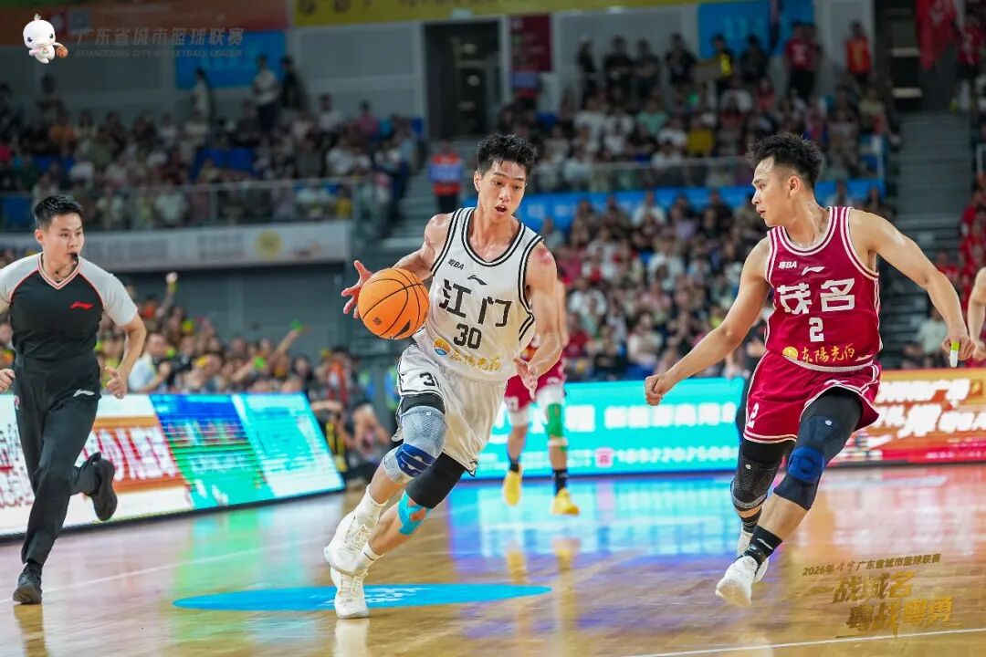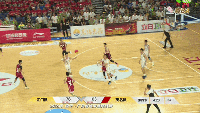 “江门队,必胜!”比赛开局,江门队跳球得手,上篮未进,茂名队率先得分抢占先机。第一节,两队状态火热,茂名队连续打出两波快攻。江门队快速转换攻防策略,内外线多点开花。最后一回合,6号许梓浩一记3分命中,江门队以33比22大比分领先结束首节。