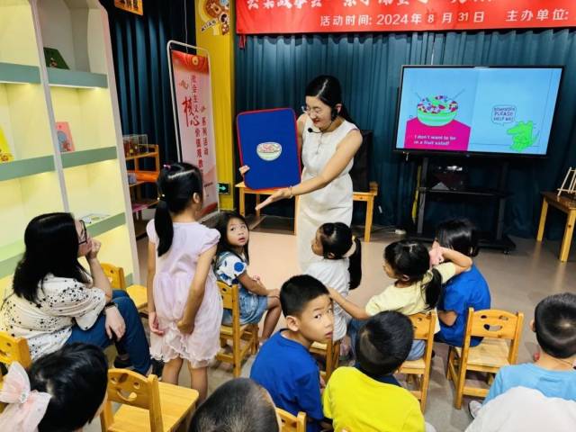 在互动环节,孩子们一个个化身为小小探险家,他们瞪大眼睛,竖起耳朵,生怕错过任何一个细节。当志愿者老师提出问题时,他们的小手就像雨后春笋般纷纷举起,争先恐后地分享着自己的想法和猜测。有的说会长出一颗巨大的西瓜树,有的说会有一群小鳄鱼从肚子里蹦出来……各种奇思妙想层出不穷,让整个活动现场充满了欢声笑语。