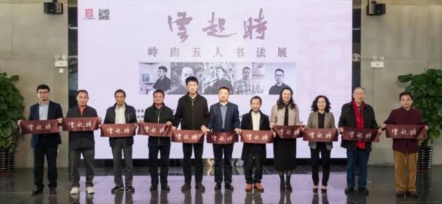 出席本次活动的领导、嘉宾与代表作者万迪龙共同为展览开幕剪彩,并祝“云起时——岭南五人书法展”圆满成功。