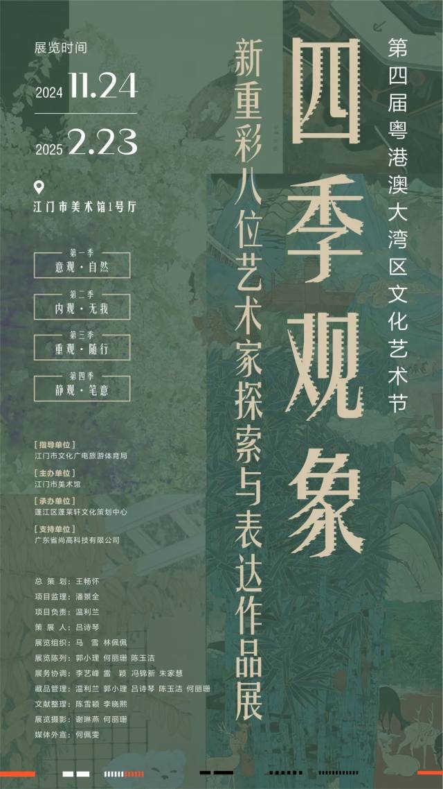 “四季观象——新重彩八位艺术家探索与表达作品展”自开展以来深受社会各界的广泛关注与赞誉。为满足广大观众的观展要求,特将该展览1号厅展览延期至2025年2月23日,2号厅于2024年12月15日后正常撤展。欢迎广大市民、游客前来参观。