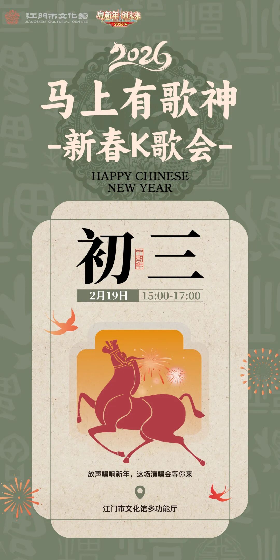 2026年2月19日(大年初三)15:00-17:00