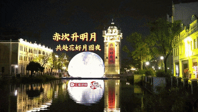 天上月、水上月、桥上月、船上月……自9月15日起,赤坎华侨古镇精心策划的“赤坎升明月”主题活动盛大开幕。19个超级圆月散落在古镇内,吸引众多市民游客前来开启一段moonwalk。