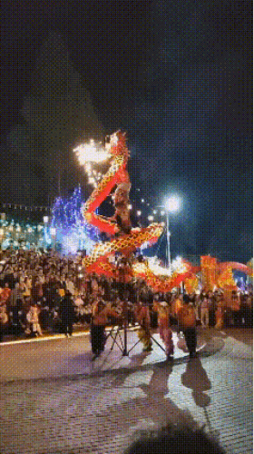 9月17日至18日,鹤山市桃源镇钱塘村委会开展钱塘彩龙巡游活动、精彩烟花秀,钱塘彩龙巡游过程中,游客、村民以及前来的亲朋好友穿过龙肚,祈求新年身体健康、心想事成、事事顺利。