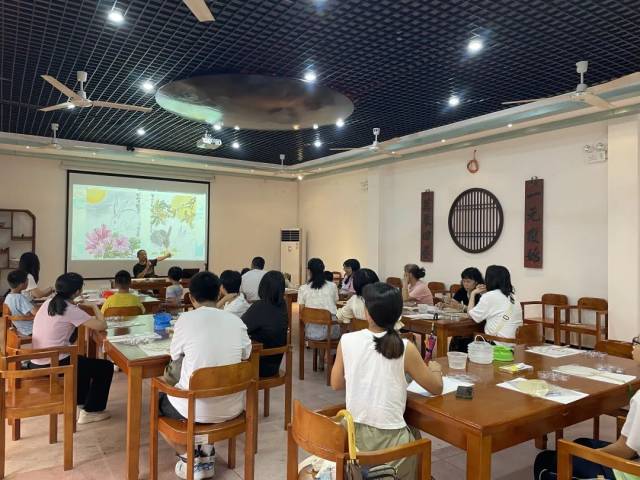 台山市博物馆举办巧手绘团扇主题活动。参与者在专业老师的指导下在扇面上进行简单的构图、描画,打造自己的专属中秋团扇。