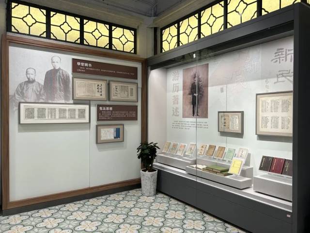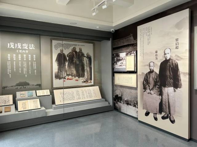 第一站,梁启超纪念馆。纪念馆位于故居南侧,建筑形式中西合璧,既有晚清岭南侨乡建筑韵味,更隐现天津饮冰室风格。展览分7个部分,以不同的专题、不同的层面,展示梁启超作为中国近代史上杰出的爱国政治活动家、思想家,享誉中外的学术巨擘和书法大家的风采。