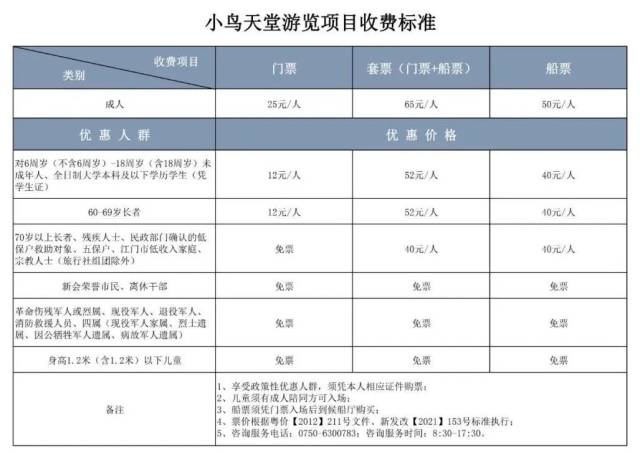 感谢您一直以来对小鸟天堂景区的关注与支持。小鸟天堂景区实行买船票赠送门票的优惠已有十余年,近年来,景区着力于改善环境和基础设施,同时运营维护成本日益增加,为保证景区的可持续发展,满足游客参观个性化需求,提供更优质、贴心的服务,经研究决定,景区自2024年12月1日起取消买船票赠送门票的优惠并推出套票,现将有关事项通告如下: