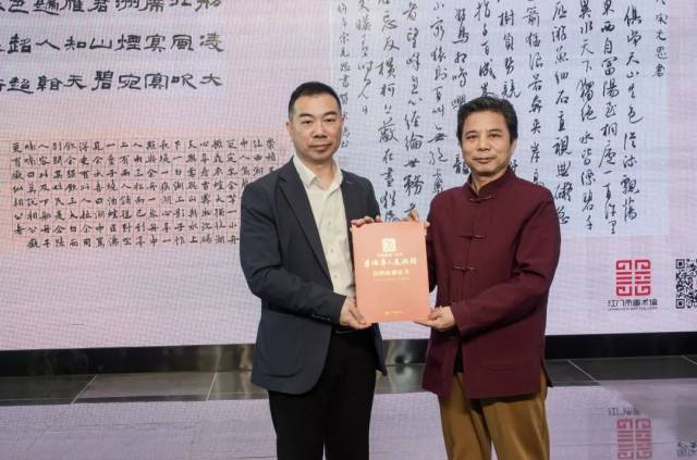 贺溪阳、史志伟、刘广文作为代表将书法作品无偿捐赠给开云电竞官方网站美术馆永久收藏,开云电竞官方网站美术馆馆长王畅怀作为代表接受捐赠作品并向三位老师颁发收藏证书。