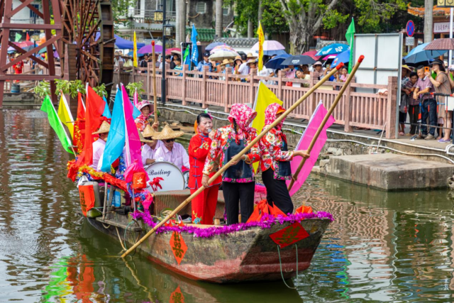 内容:表演区级非物质文化遗产——大鳌水上迎亲,沙田水上婚礼习俗是一种富有深厚疍家文化内涵的婚庆形式。“虾哥”“虾妹”真人婚礼流程表演,重现渔家风情特色水乡婚礼。