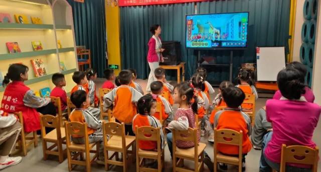 馆员带领小朋友上一节生动有趣的互动课