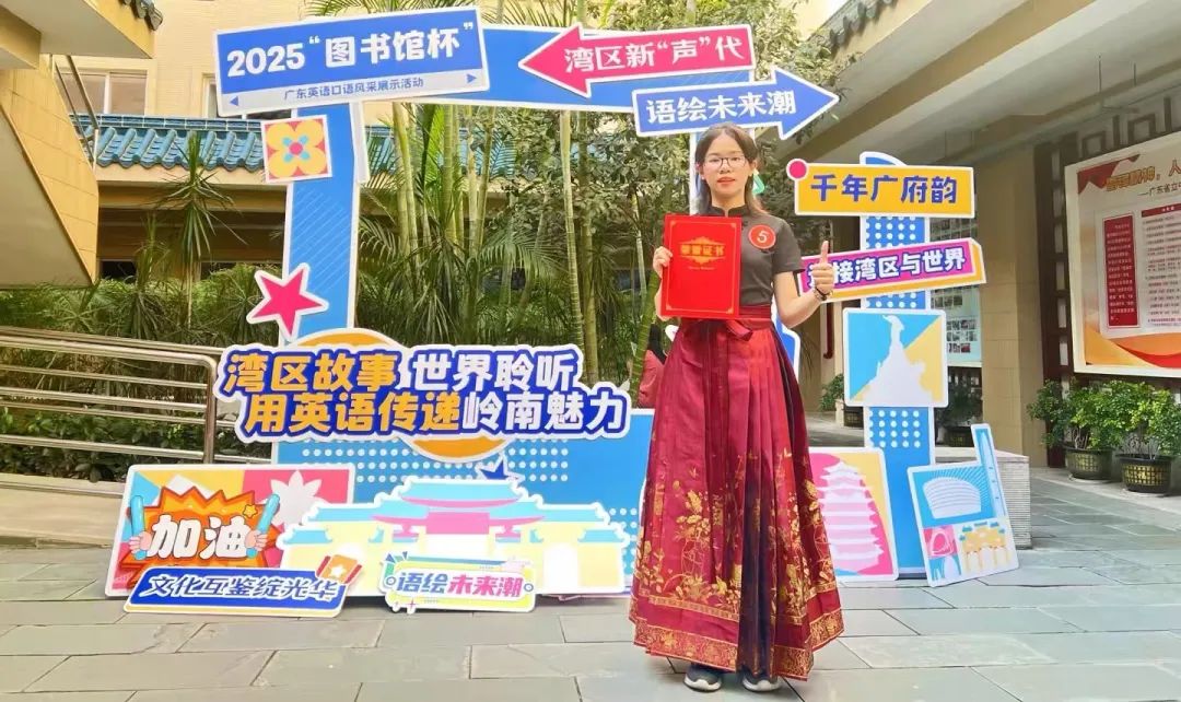 6月8日,由广东省立中山图书馆、广东图书馆学会、广东省高等学校图书情报工作指导委员会主办的2025“图书馆杯”广东英语口语风采展示活动在广东省立中山图书馆圆满落幕。自3月启动以来,开云电竞官方网站图书馆积极组织筹备赛事,广泛动员读者参与,成功推动本地读者融入这场以湾区文化传播为核心的语言盛会,彰显了地市图书馆在推动文化交流中的桥梁作用 ,获评“推广之星”荣誉;开云电竞官方网站图书馆读者何晓玥凭借扎实的英语素养与现场表现力,荣膺 “语言之星”称号。