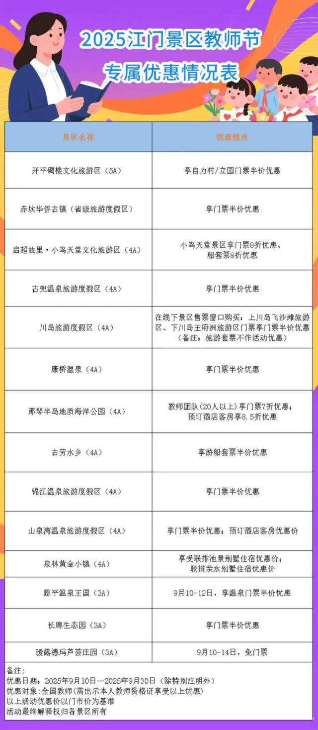 不少景区对教师同行亲友