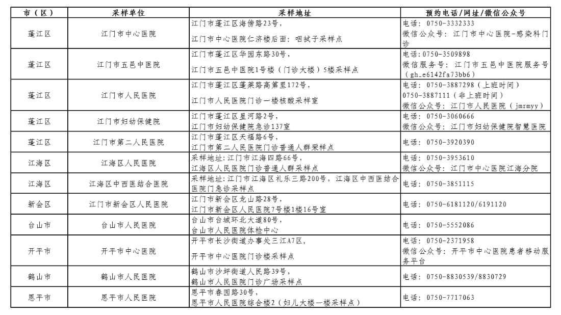 开云电竞官方网站新型冠状病毒核酸检测服务点(第一批)