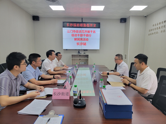 陈军凯先后到开平市长沙街道、三埠街道及月山镇,细致检查信访事项工作台账,听取有关镇街信访工作情况汇报,详细了解辖区信访积案化解、信访事项办理效能和工作中存在的困难等方面情况,对相关镇(街道)用心用情解决疑难信访问题、扎实做好基层信访工作予以充分肯定。
