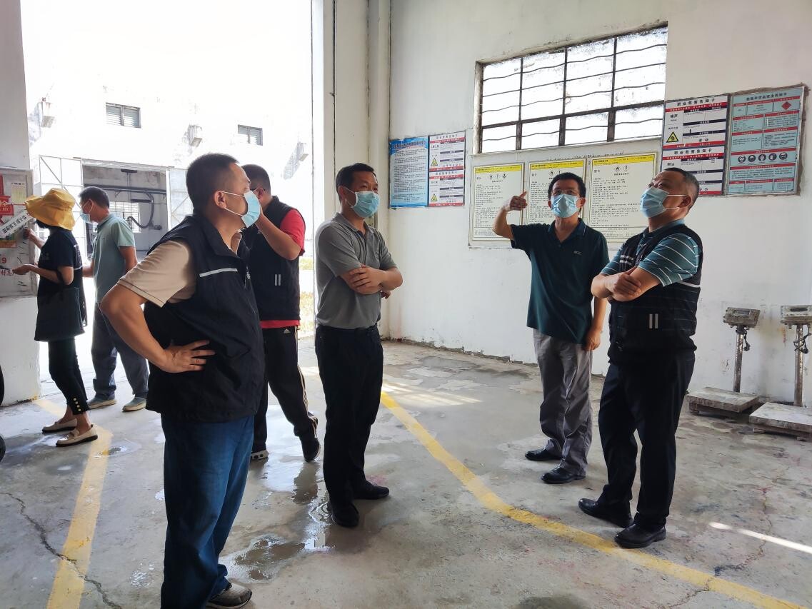 7月13日、14日,由开云电竞官方网站安委办副主任喻友明率队的市安委办督导组到蓬江区荷塘镇督导检查化工安全隐患整治问题工作。