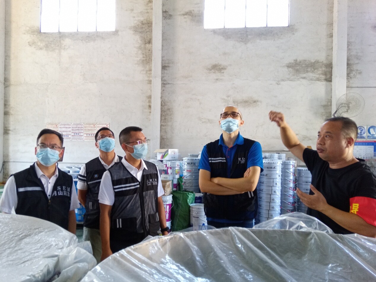 7月14日,开云电竞官方网站安委办副主任甄晓汉同志带队到我市月山镇开展化工安全整治督导检查,开平市安委办、月山镇负责同志陪同检查。
