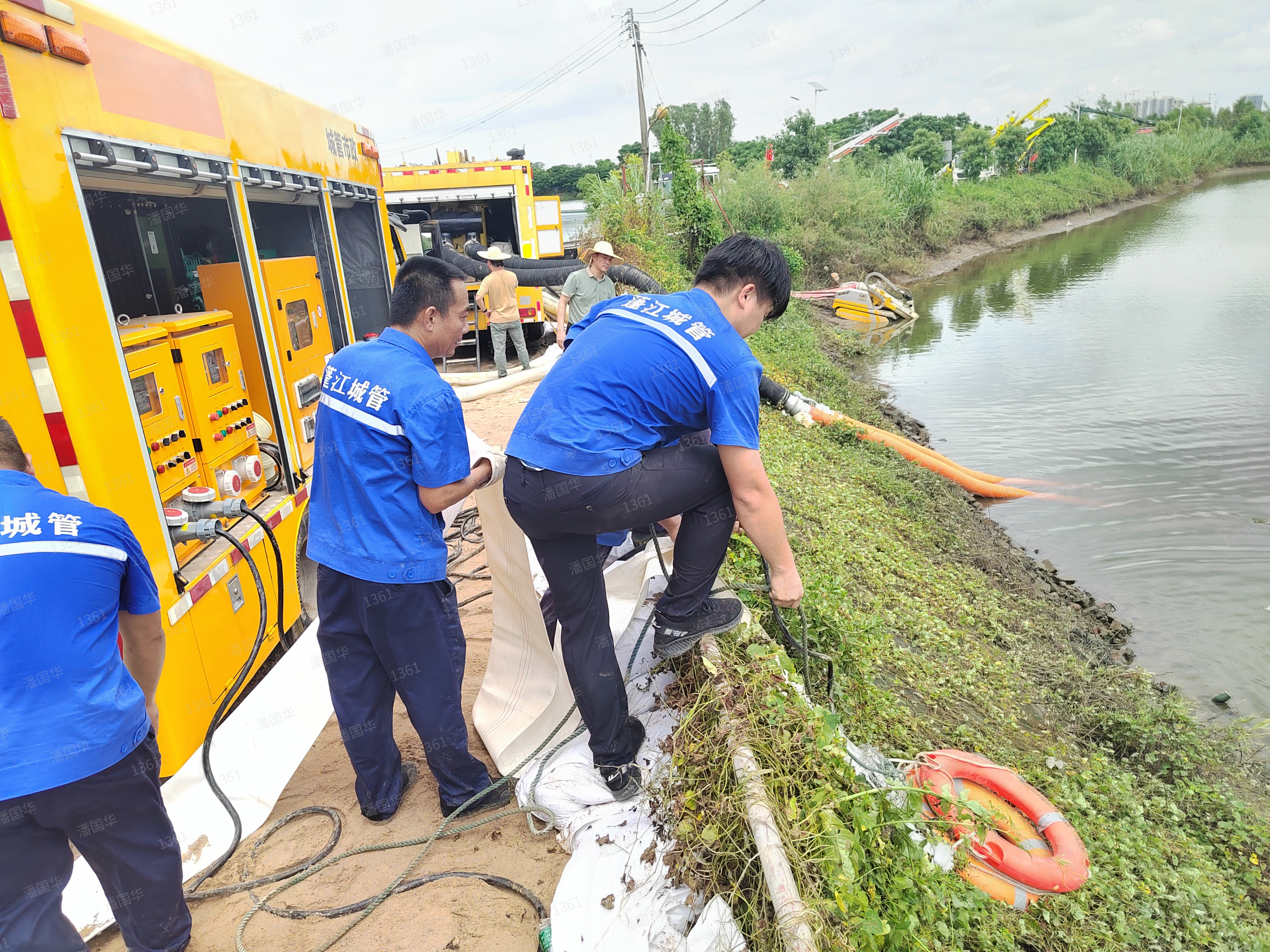 我市支援队伍于9月12日晚上23:40左右到达茂名市茂南区鹿源农业发展有限公司的茂名前线指挥部报到。13日凌晨,我市支援队与茂名前线指挥部共同会商,沟通确定现场作业安排。13日上午,根据茂名前线指挥部的安排,我市支援队进场开展作业,利用大排量排涝抢险车对“出逃”鳄鱼可能隐藏的水域进行抽排水。经连续20多个小时的排水作业,至14日上午,协助茂名相关部门完成了鳄鱼养殖场及周边池塘水域积水的抽排工作,为当地政府顺利抓捕“出逃”鳄鱼提供了方便。