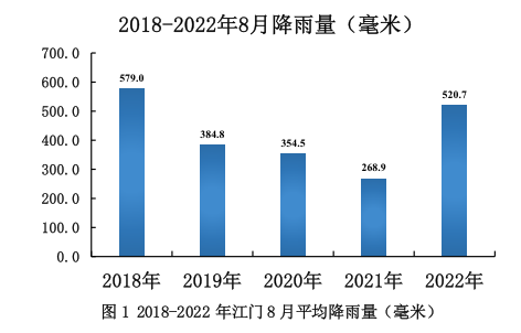 表1 2018-2022年江门各国家气象站8月份降雨量(毫米)