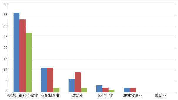 全市共发生生产安全事故58起,其中交通运输和仓储业36起、占62%;商贸制造业11起、占19%;建筑业6起、占10%;其他行业3起、占5%;农林牧渔业2起、占4%。