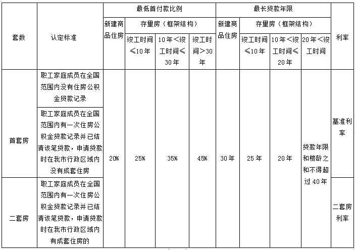 八、公积金贷款的套数认定标准、首付比例、借款年限及利率