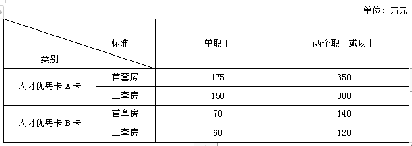 持有人才优粤卡的人才在我市购买首套和二套自住住房的,公积金最高贷款额度适度提高。其中,持有人才优粤卡A卡的,公积金最高贷款额度是我市公积金最高贷款额度的5倍;持有人才优粤卡B卡的,公积金最高贷款额度是我市公积金最高贷款额度的2倍。