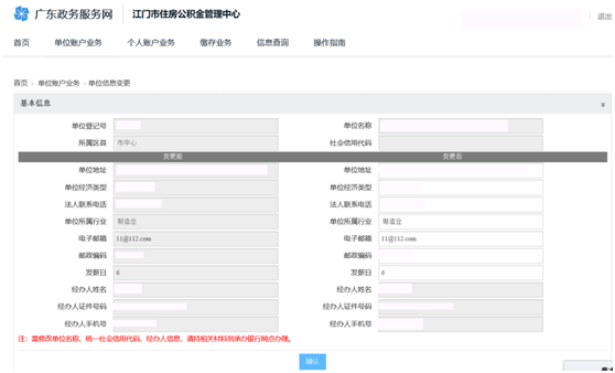 可查看单位变更前的信息,且可对变更后的数据进行编辑。