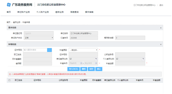 (2)漏缴补缴的补缴金额不可修改,系统自动计算,缴存调整补缴的补缴金额可修改。