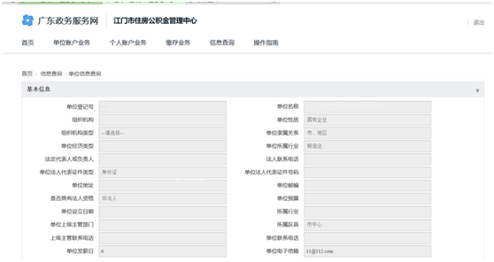 单位经办人登录http://jmgjj.jiangmen.cn:20624/wsyw,输入用户名、密码和验证码后,点击“登录”,就可以进入单位网上业务主页面,经办人可以根据自己单位的需要,进行相关业务操作。